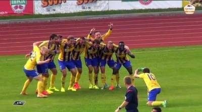 فيديو: لاعب يلتقط صورة جماعية بحذائه احتفالاً بهدف فريقه