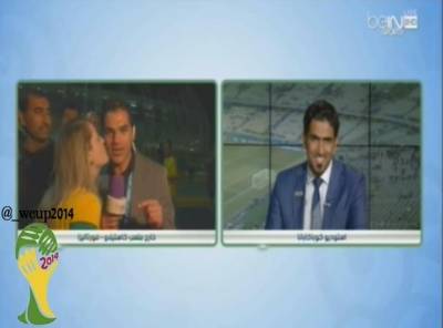 بالفيديو: مشجعة برازيلية تفاجأ مراسل قناة عربية بقبلة على الهواء مباشرة!