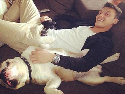 نجم ارسنال مسعود اوزيل في جلسة استرخاء مع كلابه