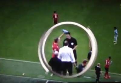 بالفيديو..لاعب "يمازح" حكماً بسكب "زجاجة مياه" على رأسه