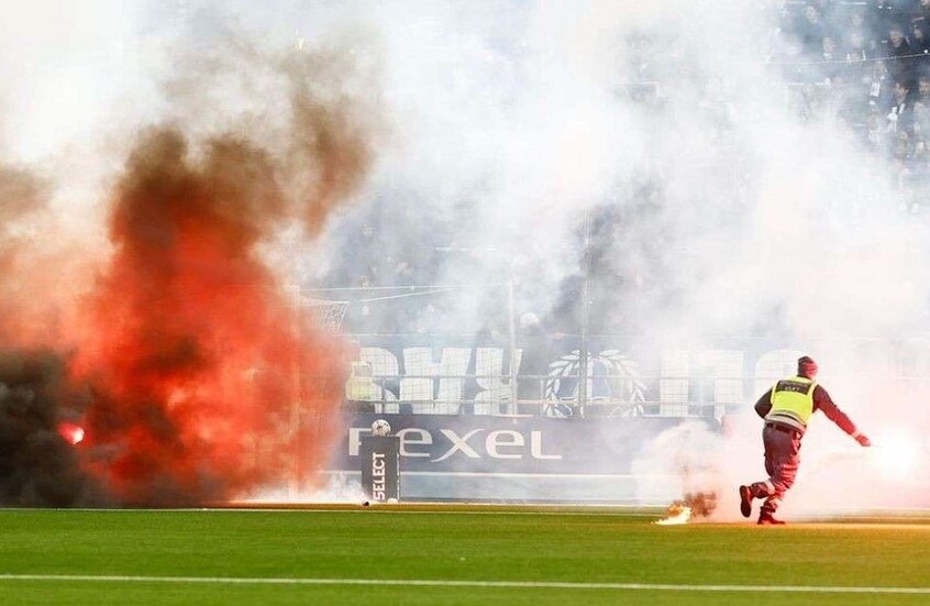 احتراق أرضية ملعب والمرمى بسبب جماهير غاضبة (فيديو)